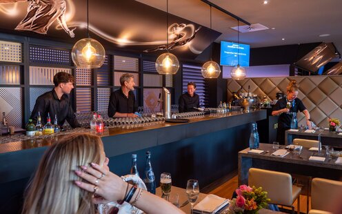 Genießen Sie ein kühles Bier an unseren beliebten Bars oder bedienen Sie sich am reichhaltigen Buffet. Zum einen profitieren Sie von einem persönliche AnsprechpartnerIn sowie einem aufmerksamen Hostessen-Service, zum anderen genießen Sie einen eigenen Unternehmenstisch ab 4 Tickets.